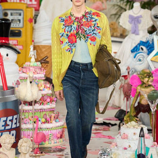 Más que escenografía, fue una instalación inmersiva que reafirma algo clave: Diesel no mira el pasado con nostalgia, sino como materia prima. La reutilización y transformación de objetos dialoga con el compromiso continuo de la marca con el upcycling y el uso de materiales reciclados en denim, ready-to-wear y accesorios.