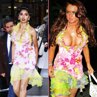 🎀 Avantika, actriz del reboot, uso un diseño de SS04 Versace, el mismo que uso Lindsay Lohan en su cumpleaños número 18.